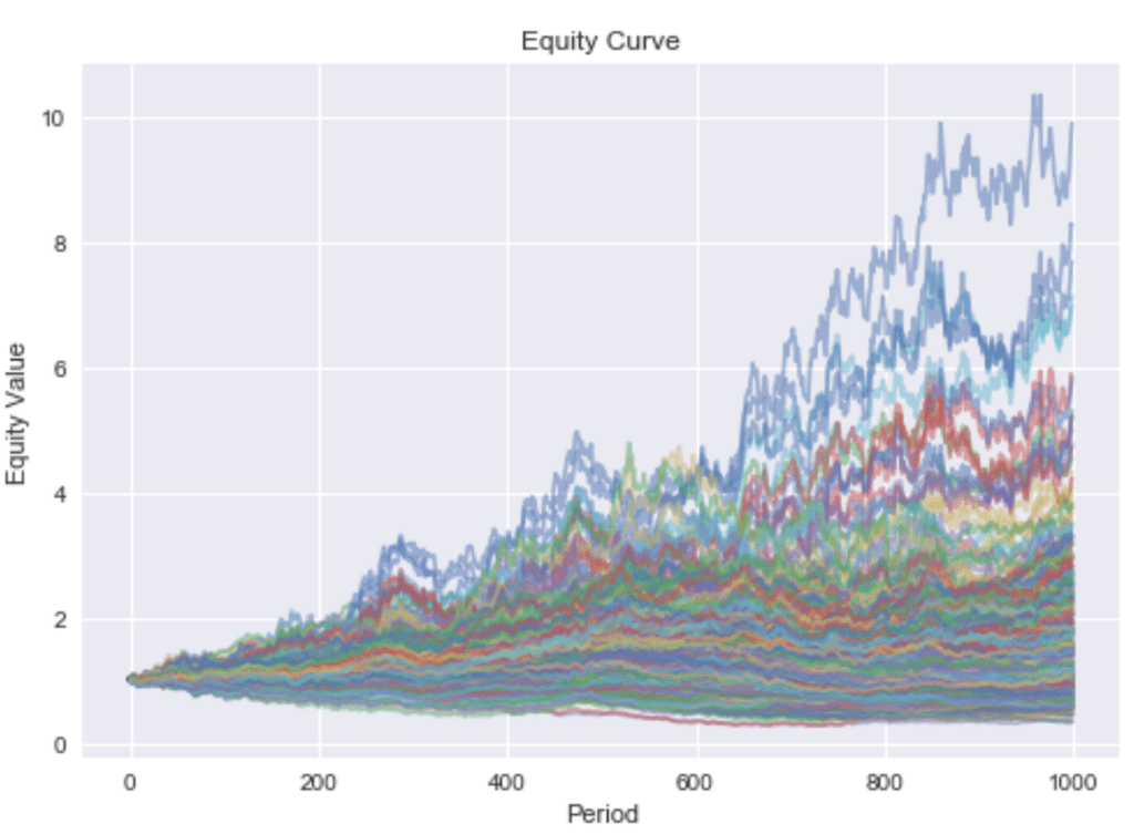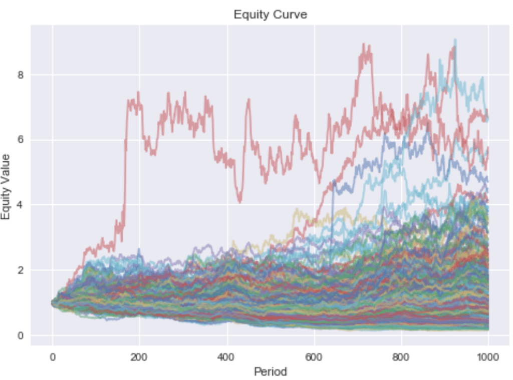 This very smooth equity curve can be achieved since we can hedge out the systematic factor risk. This makes our bets independent. Independence allows us to reason by the weak law of large numbers that the realized returns will converge in probability to the expected returns. This is only true if short sales are permitted. If we exclude shorting, we can only reduce the asset specific risk while exposing the portfolio to the irreducible systematic risk. The devastating effect this has on our portfolio can be seen by the much more rugged equity curve in Figure 3.