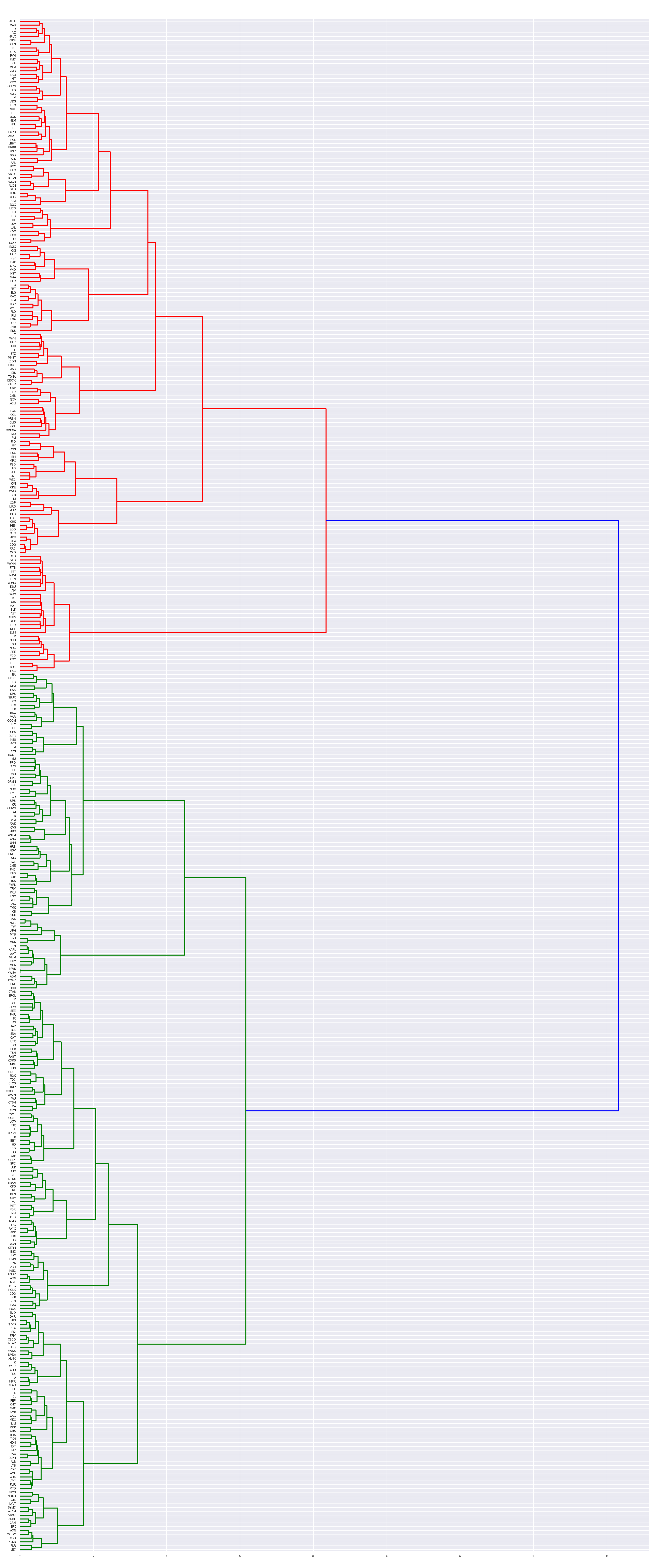 Instead of clustering stocks according to business description, it’s also interesting to group them according to risk factors. Doing the same procedure as described before for Item 1A, we obtain the dendrogram displayed in Figure 4.